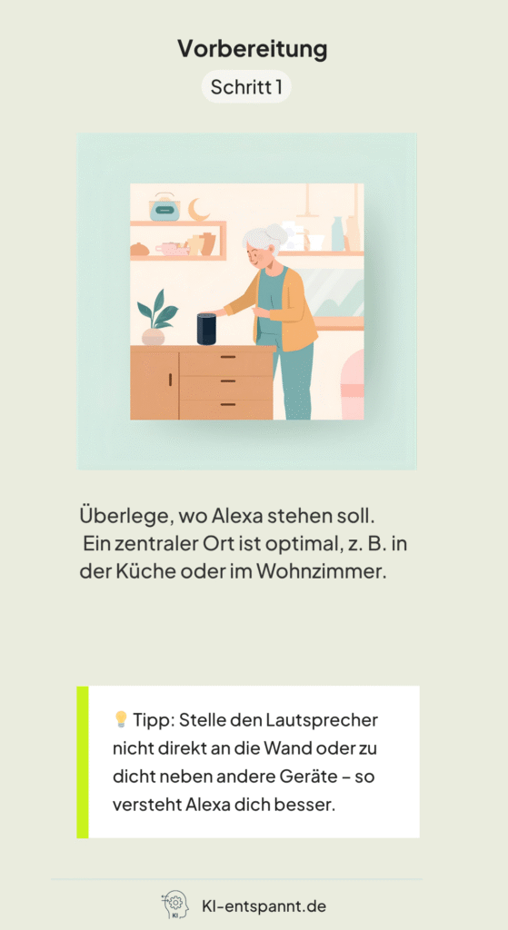 Stell Alexa dort auf, wo du sie oft brauchst – z. B. in der Küche oder im Wohnzimmer.