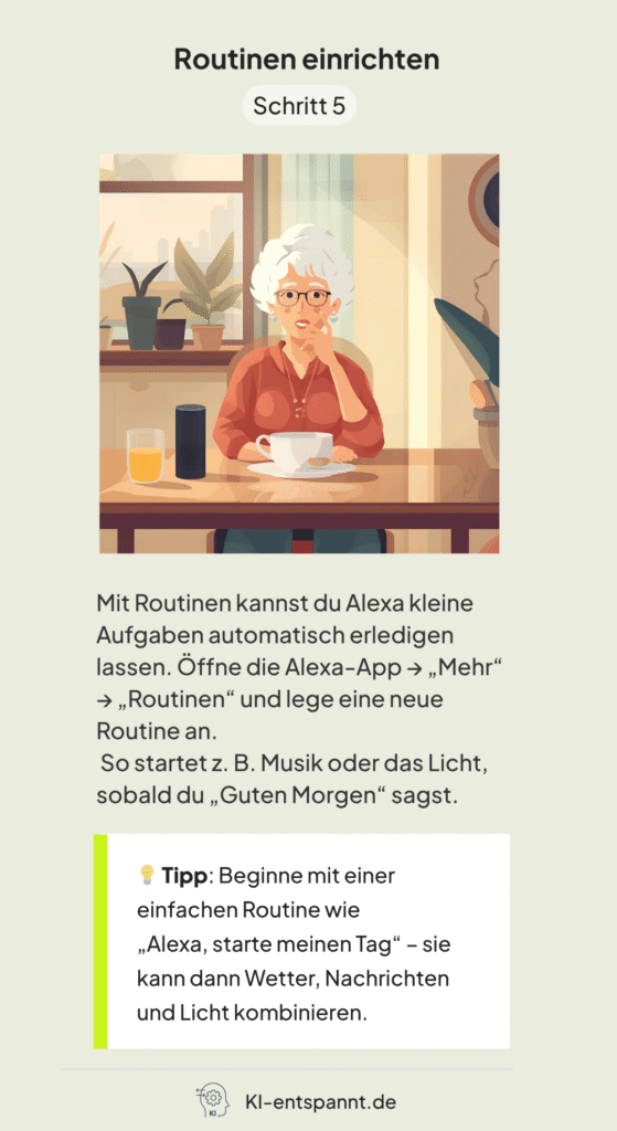 „Alexa, erstelle eine Routine ‚Guten Morgen‘, die das Licht einschaltet und das Wetter vorliest.“